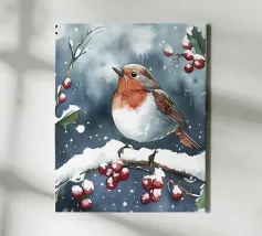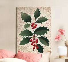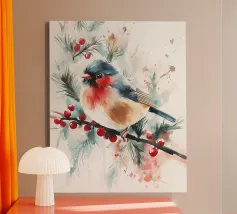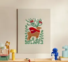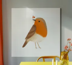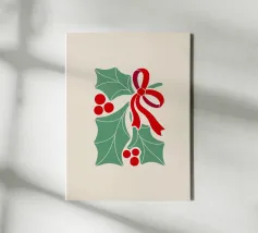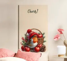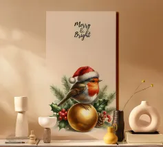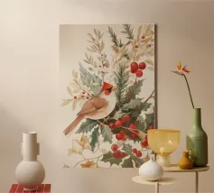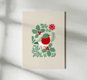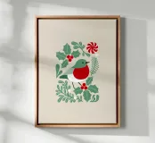 Vier de charme van het geliefde kerst roodborstje met deze delicate Art Nouveau-illustratie. Dit roodborstje in de natuur met hulst, groen en feestelijk snoepgoed, symbool van warmte en wintervreugde, is getekend met sierlijke lijnen en minimale details, in een traditioneel feestelijk palet van ton-sur-ton groen en levendige roodtinten op zacht ivoor met textuur.Als onderdeel van de Nouveau Festive Collection voegt het een poëtisch en tijdloos accent toe aan muren en seizoensaccessoires - een perfect cadeau voor liefhebbers van een elegante vakantiestijl.