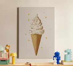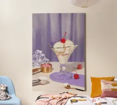 Breng een vleugje zoetheid in je leven met de “Kirsch Eis” canvas van Eat this! Dit prachtige kunstwerk toont een smakelijke ijsje met een kers erbovenop, perfect voor de liefhebbers van zoetigheid en een speelse sfeer. Ideaal voor in de keuken, eetkamer of zelfs als een leuk accent in de slaapkamer. De kleurrijke afbeelding voegt leven toe aan elke muur en is een geweldige conversatiestarter. De combinatie van heerlijke kleuren en de levendige afbeelding maakt deze canvas perfect voor iedereen die van unieke en zelfexpressieve decoratie houdt. Ideaal als cadeau voor vrienden en familie die van ijs en leuke kunst houden. Verander je woonkamer in een gezellige plek vol inspiratie met dit vrolijke ontwerp!