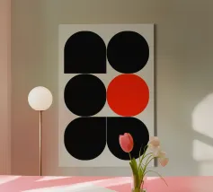 Dit mid century canvas met geometrisch rood-zwart ontwerp brengt een moderne en stijlvolle sfeer in je woonkamer of kantoor. Gemaakt van duurzaam canvas met hoge kleurvastheid, ideaal voor liefhebbers van vintage en abstracte wanddecoratie. Perfect als cadeau voor interieurfans zonder personalisatieopties.