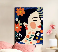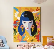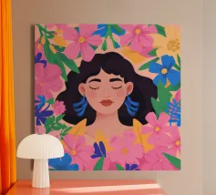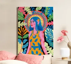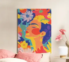 Breng kleur en karakter in je ruimte met onze moderne canvas wanddecoratie 'Mindset' van Tamsen Design. Dit kunstwerk, met een levendig ontwerp van een vrouw met een opvallende achtergrond, is ideaal voor een trendy woonkamer of als statement piece in je slaapkamer. Een perfecte keuze voor liefhebbers van unieke en creatieve decoratie.