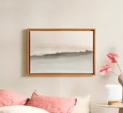 Ervaar sereniteit met dit minimalistische aquarelschilderij met een rustig landschap in Scandinavische stijl in zachte aardetinten. De rustgevende herfsttrillingen en gedempte tinten roepen een gevoel van vrede en harmonie op. Of het nu als muurschilderij, kussens of mokken is, breng een vleugje schoonheid van de natuur in je ruimte.