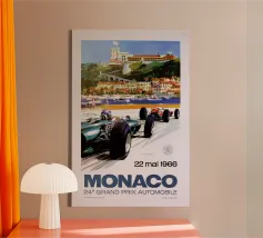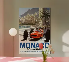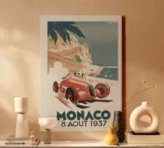 Dieses elegante Vintage Poster zeigt ein klassisches Rennauto vor der glamourösen Kulisse von Monaco. Mit nostalgischen Farben, Retro-Texturen und mediterranem Flair fängt das Motiv den Glanz vergangener Motorsport-Tage im Fürstentum ein. Ideal für Liebhaber von Oldtimern, Retro-Reisekunst und dem legendären Rennsport an der Côte d’Azur