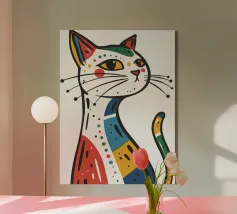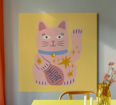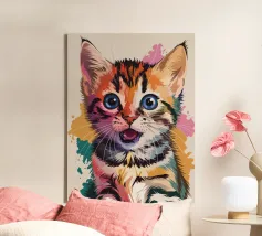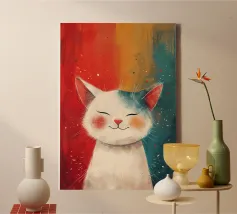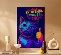 Als het leven grijs aanvoelt, brengt deze kat kleur. Met zijn vrolijke duim omhoog en heldere regenboogachtergrond is deze cartoonkat een therapeut in zakformaat aan je muur. Of je nu een kinderkamer inricht, een creatieve studio of je keuken - deze poster zegt wat we allemaal moeten horen: Alles komt goed. Helder, schattig en vol goede vibraties.