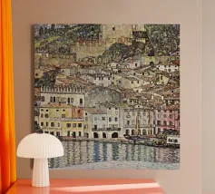 Boom en architectuur: Rhythms" (1920) van Paul Klee voegt het organische en het geconstrueerde samen tot één visuele symfonie. Door middel van abstracte ritmes, gestructureerde lijnen en zachte aardetinten roept Klee de stille harmonie op tussen natuur en architectuur. Een meditatieve compositie die evenwicht, groei en orde weerspiegelt in een unieke modernistische taal.
