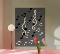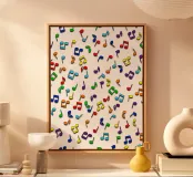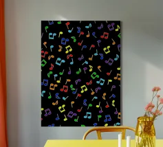Rainbow Notes is een levendig, vrolijk ontwerp met kleurrijke muzieknoten op een helderwitte achtergrond. De dynamische indeling en de heldere kleuren staan voor creativiteit, beweging en een goed humeur.