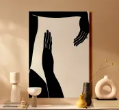 Dit unieke kunstwerk toont de beklijvende kracht van aanraking en gebaar. De silhouetten van zwarte handen op de witte achtergrond creëren een harmonieus evenwicht tussen vorm en leegte, nabijheid en afstand. Deze minimalistische compositie voegt diepte toe aan elke kamer en zet aan tot nadenken over menselijke verbindingen. Ideaal voor moderne interieurs die subtiele maar betekenisvolle accenten willen leggen.