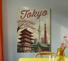"Architectuurtekening ontmoet reisposter in art-decostijl."