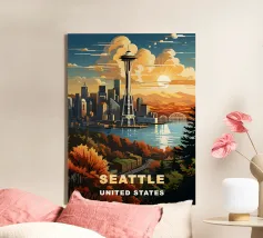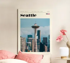 Breng een stukje Seattle in je huis met deze prachtige canvas van Henry Rivers! Perfect voor liefhebbers van kunst en reislustigen, deze illustratie ademt de magie van Seattle uit. De combinatie van de iconische Space Needle met het serene landschap van dennenbomen en bergen maakt het een geweldige aanvulling voor elke kamer. Of je nu een moderne woonkamer, een creatieve studio of je slaapkamer wilt opfleuren, deze kunstwerk zal zeker bewondering en gesprekken opwekken. Perfect als cadeau voor vrienden die houden van cityscapes en unieke decoraties. Minimalistisch en toch levendig, het is ideaal voor iedereen die houdt van reisbestemmingen en urban design.