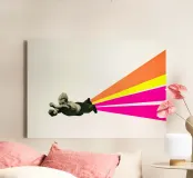 Breng kleur en energie in je ruimte met deze unieke abstracte canvaswanddecoratie van een superheld. Perfect voor de kinderkamer of als uitnodigende toevoeging aan je woonkamer.