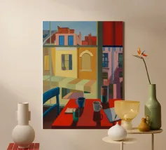 Schilderen is een dynamische dans tussen spontane energie en doelbewuste controle. Ik begin vaak met een uitbarsting van kleur en gebarentekens, waarbij ik de onvoorspelbare reis die elk doek met zich meebrengt omarm. Vanuit deze initiële energie bouw ik structuur en verhaal op, waarbij ik mijn intuïtie de compositie laat leiden naar een staat van evenwicht.