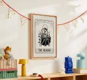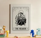 Breng een vleugje mysterie en karakter in uw ruimte met deze unieke minimalistische canvas met de titel "THE READER". Deze sfeervolle wanddecoratie is perfect voor boekliefhebbers of als een opvallend accentstuk in elke kamer.