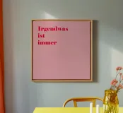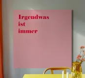 In de linkerbovenhoek staat de slogan Something is always wrong in rijk framboosrood op een roze achtergrond - tongue-in-cheek, eerlijk en absoluut levensecht. Deze minimalistische typografie raakt de kern van de werkelijkheid op een charmante manier met een eenvoudige zin. Ideaal voor in de keuken, op kantoor of in de woonkamer. Het motief combineert zomerse kleurrijkheid met subtiele humor en maakt van elke muur een gespreksonderwerp - voor iedereen die de chaos van het dagelijks leven met stijl en kalmte aanpakt.