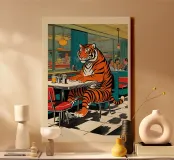 Tiger Diner - Retro pop-art poster met tijger in een café