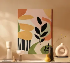 Een pop-artillustratie met felle kleuren en organische vormen geïnspireerd door Henri Matisse. Een speels en expressief stuk met een modern tintje.