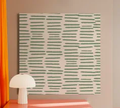 Dit kunstwerk is een naadloos groen zigzagpatroon dat moderne esthetiek combineert met retro charme. De gedurfde lijnen en het levendige groen voegen een dynamische en frisse vibe toe. Perfect voor iedereen die een stijlvolle draai aan zijn interieur wil geven. Bekijk het en breng een vleugje gedurfde elegantie in je interieur!