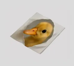 Een schattig eendje komt tevoorschijn vanonder een zachte witte handdoek. Zijn pluizige gele veren en nieuwsgierige ogen creëren een schattig en charmant tafereel.