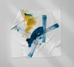 Spatten waterverfachtige verf spatten over een rigide raster. De twee lagen worden over elkaar heen gelegd zonder zich te vermengen, waardoor een visuele dialoog ontstaat tussen organische spontaniteit en een strikt kader. Een schilderij dat zowel hemels als architecturaal is.