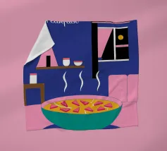 "Aap en druiven" is een geïllustreerde bewerking van het klassieke verhaal met een modern artistiek tintje.
