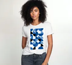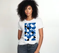 Geometrische abstracte Bauhaus-patroonprint die verwijst naar de periode van de school (1919-1933). Bevat een dynamisch patroon van herhaalde vormen van gecombineerde cirkels in verschillende tinten blauw. De nadruk ligt op vorm, herhaling en een monochroom blauw palet, dat de Bauhaus-esthetiek belichaamt. Digitaal kunstbestand van hoge kwaliteit (7000x5000px, 300 dpi) perfect voor prachtige afdrukken. Ideale moderne muurkunst.