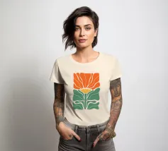 Hoogwaardig getailleerd dames T-shirt van 100% gecertificeerd biologisch katoen.