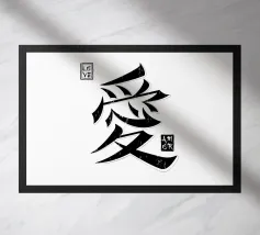 사랑, liefde in het Koreaans. Typografie in zwart en (transparant) wit. Je kunt de achtergrondkleur veranderen. Minimalistische typografie poster.