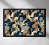 A modern abstract camouflage pattern featuring fluid watercolor-style shapes in navy blue, slate grey, peach, tan, and cream. This artistic take on traditional camo combines military-inspired patterns with soft watercolor aesthetics for a contemporary look. Perfect for camo lovers, abstract pattern enthusiasts, modern military style fans, and anyone who appreciates the blend of tactical patterns with artistic watercolor softness