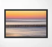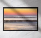 Abstracte foto van een zonsondergang aan de Duitse Baltische kust met onscherpe strandhoofden.