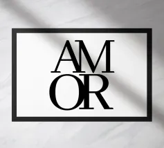 Amar, liefde in het Spaans. Typografie in zwart en (transparant) wit. Je kunt de achtergrondkleur veranderen. Minimalistische typografie poster.