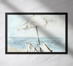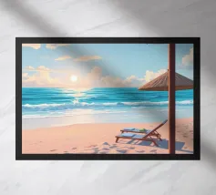 Deze poster vangt de perfecte zomerdag aan de turquoise blauwe zee. Ideaal voor iedereen die verlangt naar zon, zand en zee - de afbeelding brengt een ontspannen strandsfeer direct aan je muur.