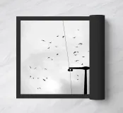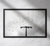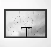 Natuurfotografie in zwart-wit met vogels en hoogspanningsmast