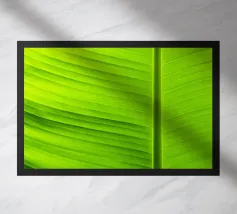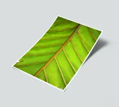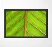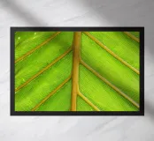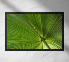 De palmbladnerf loopt gedurfd door het midden, een sterke middennerf van waaruit fijnere nerven zich naar buiten vertakken, wat structuur en balans geeft aan de elegante bladeren.
