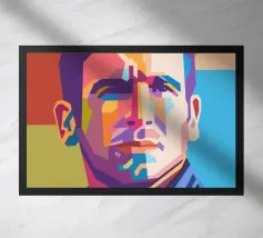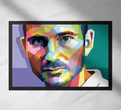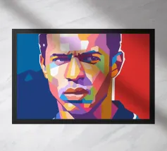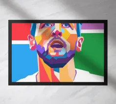 Coco in WPAP-stijl is een gedurfd en kleurrijk geometrisch portret van de beroemde Franse voetballer. Het WPAP (Wedha's Pop Art Portrait) kunstwerk, dat gebruik maakt van levendige kleuren en scherpe hoekige vormen, legt Coco's kalme vastberadenheid en iconische look vast en weerspiegelt zijn elegantie, kracht en vaardigheid op het voetbalveld.
