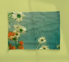 Onderhoudsvriendelijke bovenkant van polyester en onderkant van zwart antislip-rubber.