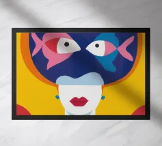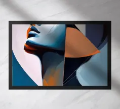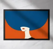. Een opvallende mix van eenvoud en durf, dit kunstwerk vangt de essentie van vrouwelijkheid met een twist. De levendige oranje achtergrond steekt af tegen de diepblauwe bol en creëert een fascinerend contrast. De figuur, met een minimalistisch wit gezicht en verleidelijke rode lippen, straalt een gevoel van mysterie en kracht uit. Het is als een visueel raadsel - wat zit er achter die gedurfde vorm? Perfect voor wie houdt van abstracte kunst die boekdelen spreekt zonder een woord te zeggen. Ideaal om een vleugje moderne elegantie toe te voegen aan elke ruimte