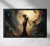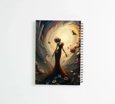 Surrealistische draaikolk van leven en verval in donkere, dromerige scène... Deze afbeelding toont een betoverende mix van levendig leven en somber verval, met delicate, rottende bloemen en glinsterend licht, te midden van een wervelende draaikolk van kleuren en texturen, in een surrealistische stijl met gotische romantiek.