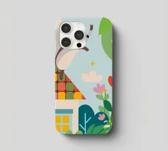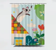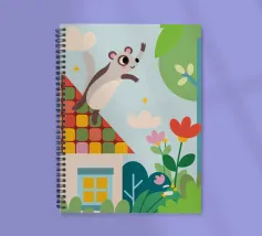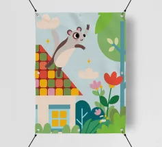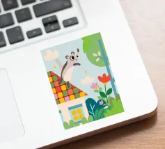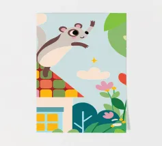 Op deze schattige en kleurrijke illustratie springt een eekhoorn vrolijk tussen de bomen.