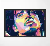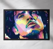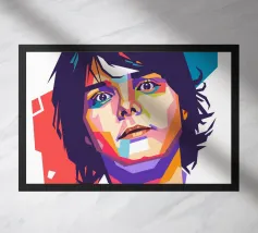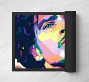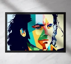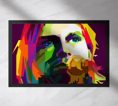 Een opvallend WPAP-portret van The Voice, de legendarische rockzanger die bekend staat om zijn krachtige stem en emotionele diepgang. Het kunstwerk is weergegeven in gedurfde geometrische vormen en levendige contrasterende kleuren. Het legt zijn intense blik en iconische aanwezigheid vast en mengt moderne pop-art energie met de rauwe geest van grunge."