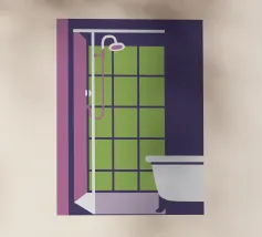 Voor liefhebbers van minimalistisch design en moderne esthetiek is de illustratie "Douche" de perfecte keuze! Dit ontwerp toont een douche met een eenvoudige maar elegante stijl.