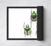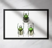 Scarab beetles have long been symbols of transformation, rebirth, and the mysteries of life. In ancient cultures, especially in Egypt, they were revered as symbols of the sun’s journey and the cycle of life. This photograph captures that sense of mystique and history, making it a meaningful addition to your home or office. This image is perfect for nature lovers, insect enthusiasts, or anyone looking to add a striking piece of art to their collection. It’s more than just a photograph—it's a window into the fascinating world of these jewel-like creatures.