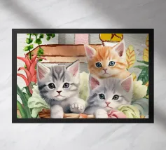 "Illustratie "Drie katjes De schattigheid van drie kleine katjes in één ontwerp! Dit ontwerp heeft drie schattige en schattige kittens, perfect voor kattenliefhebbers en mensen die op zoek zijn naar een lief tintje in hun leven.