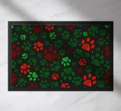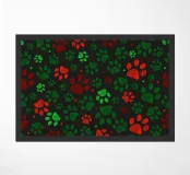 Groen, rood gekleurd kerstontwerp doodle paw prints
