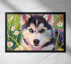 dog flowers daisies field nature meadow animal pet outdoor landscape sky blue green white pink grass happy summer bloom canine