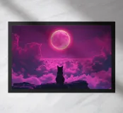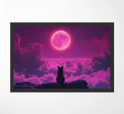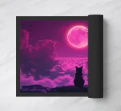 moon clouds cat night sky silhouette pink sky fantasy dreamlike rocks feline watching ethereal landscape magical aura mystical nocturnal scene vivid hues glowing light celestial event tranquil ambiance majestic view isolated figure