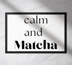 Drink graag een matcha. Typografie in zwart en (transparant) wit. Je kunt de achtergrondkleur veranderen. Minimalistische typografie poster.