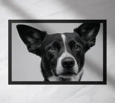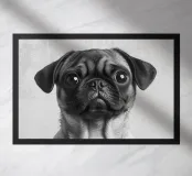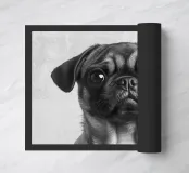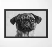 Deze schattige mopshond met zijn grote ogen en zachte vacht straalt pure levensvreugde uit. Het minimalistische zwart-wit portret benadrukt perfect de charme van dit kleine hondenras en is een prachtige aanvulling op elke muurkunstcollectie.