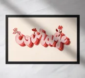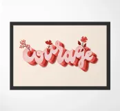 "Courage": minimalistische typografie die moed en vastberadenheid belichaamt. Dit ontwerp herinnert je eraan om met zelfvertrouwen je eigen weg te gaan en uitdagingen aan te gaan. Ideaal voor slaapkamers, thuiskantoren of creatieve ruimtes - een stijlvol statement voor meer zelfvertrouwen in het dagelijks leven.