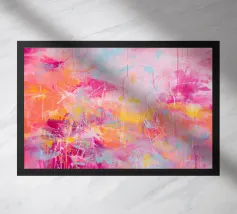 Dit abstracte structuurkunstwerk toont in elkaar overvloeiende kleurvlakken in neon pastelroze, geel, blauw, groen en roze. De zachte penseelstructuren en de harmonieuze popart-kleurcompositie creëren een levendige, dromerige sfeer. Het motief oogt modern, licht en emotioneel en nodigt uit tot vrije interpretatie.
