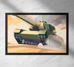 Een illustratie van een terreinwagen op rotsachtig terrein in een moderne geometrische stijl.