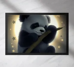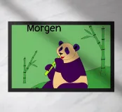 Dit kunstwerk toont een panda die geniet van zijn voedsel, bamboe, in een creatieve en moderne typografische stijl.