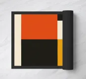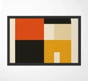 Moderne, op Bauhaus geïnspireerde poster in krachtige kleuren en heldere vormen. Combineert strenge geometrie met zachte rondingen - een tijdloos designstatement voor woon- en werkruimtes.